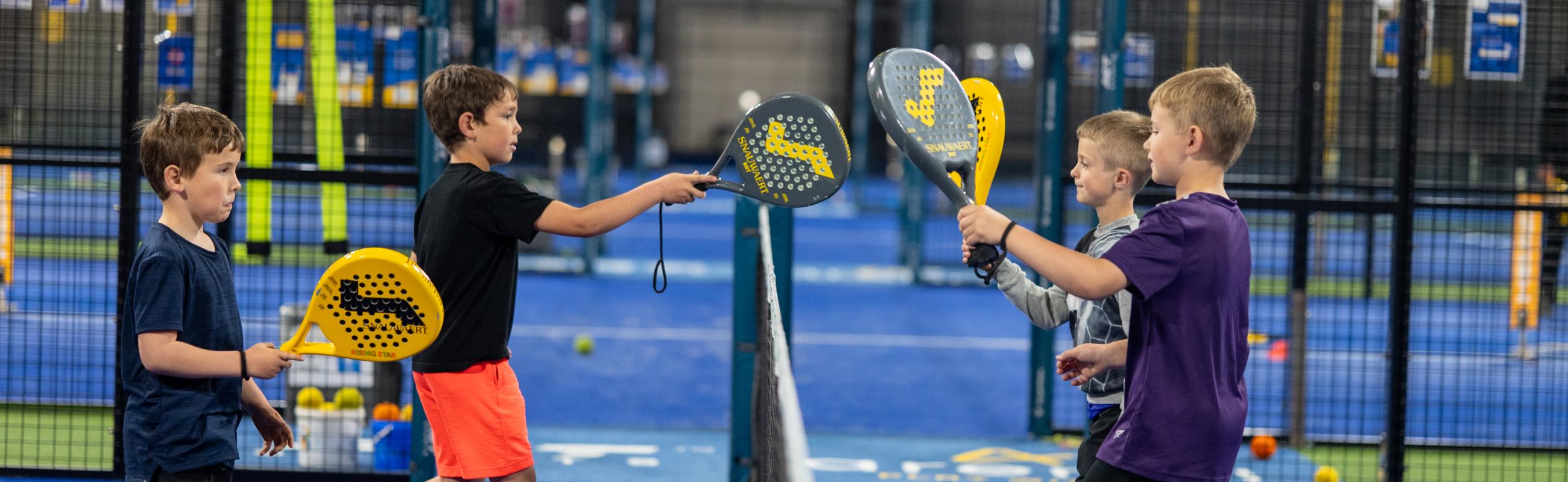 Ontdek de leukste padel lessen voor kinderen in de regio Lommel! Bij ons draait alles om plezier, vriendschap en sportiviteit terwijl je de (basis)vaardigheden van padel leert. Schrijf je nu in en word de volgende padelkampioen!